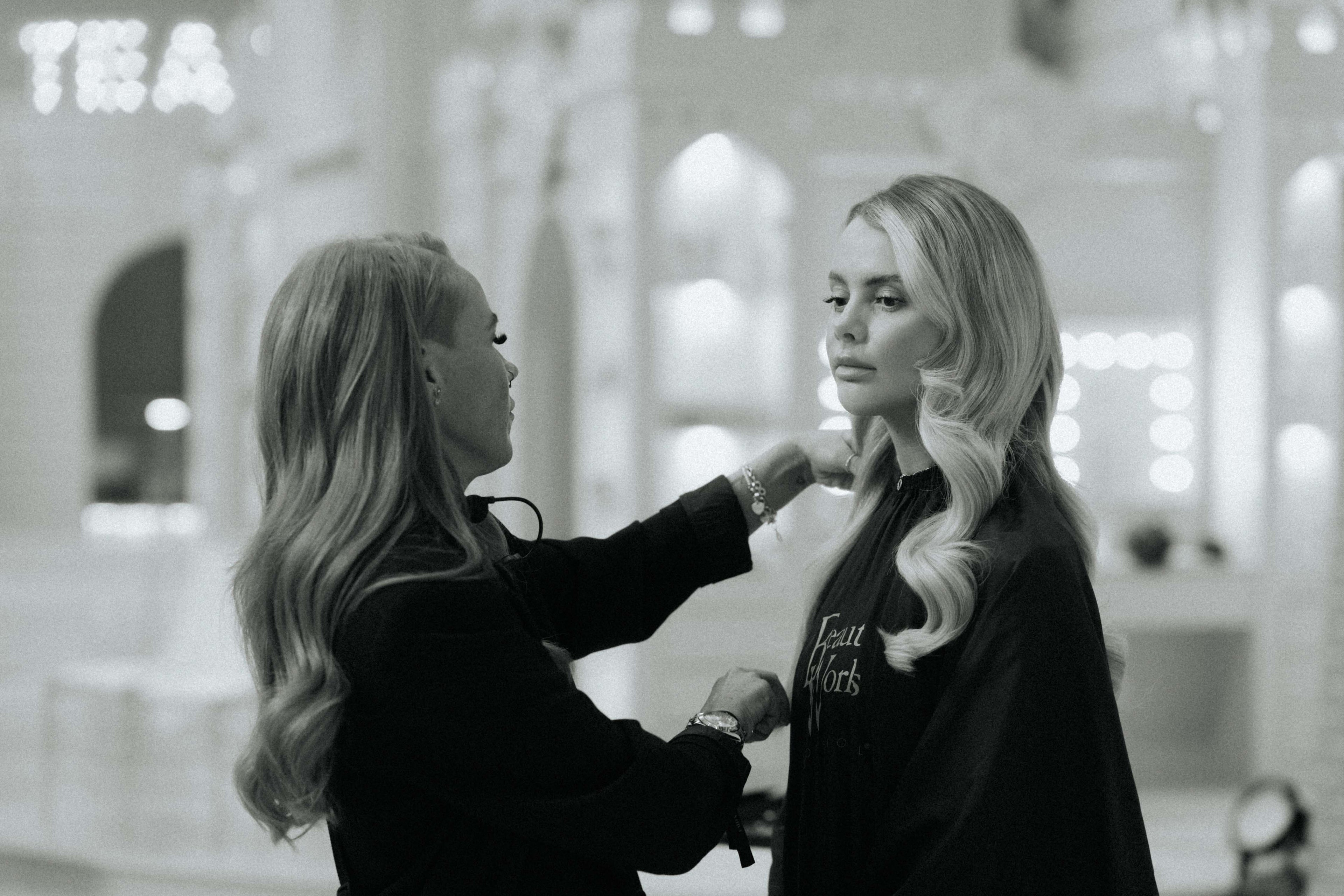 Full head colour/usually brunette, can include a few baby lights for a little dimension, cut and blow-dry.